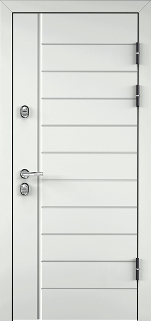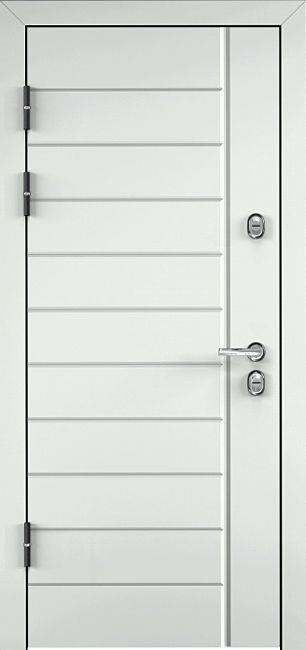 Эта белоснежная входная дверь с линиями №30 станет стильным и надежным элементом для любого интерьера. Благодаря отделке из панелей МДФ с ПВХ-покрытием, дверь выглядит элегантно и обладает высокой устойчивостью к внешним повреждениям. Внешний вид дверного полотна дополнен утонченными линиями, что придает ей современный, лаконичный вид. Прочный каркас из профильных труб 50х25 мм и лист металла толщиной 2 мм обеспечивают отличную защиту и долгий срок службы. Два контура резинового уплотнителя эффективно защищают от шума и холода, создавая комфорт в помещении. Замки Просам и Мосрентген с тремя ригелями гарантируют надежную безопасность. Дополнительно можно заказать зеркала, стеклопакеты и кованые элементы, что делает дверь универсальной для разных дизайнерских решений. Квартирная дверь входная белоснежного цвета с линиями №30 от производителя: быстрое изготовление и монтаж в Одинцово, индивидуальные размеры, широкий выбор материалов и фурнитуры, официальная гарантия до 10 лет.
