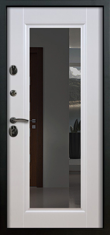Металлическая входная дверь с зеркалом внутри №1 создана как универсальное решение для дома, квартиры или офиса, где важны и безопасность, и комфорт. Каркас выполнен из прочной профильной трубы с металлическим листом толщиной 2 мм и рёбрами жёсткости, что обеспечивает устойчивость к механическим воздействиям и долгий срок службы. Снаружи дверь покрыта порошковой окраской, стойкой к атмосферным влияниям и царапинам, а изнутри отделана МДФ с ПВХ-покрытием, которое сохраняет свежий вид даже при интенсивной эксплуатации. Встроенное зеркало превращает полотно в практичный элемент интерьера: оно визуально расширяет пространство прихожей и избавляет от лишних предметов мебели. Два контура уплотнителей защищают от пыли и сквозняков, а блокираторы усиливают общую надёжность конструкции. Модель не оснащена терморазрывом, зато отличается продуманным балансом практичности и доступной цены, оставаясь удобным вариантом для повседневного использования. Металлическая входная дверь с зеркалом внутри №1 от производителя: быстрое изготовление и монтаж в Одинцово, индивидуальные размеры, широкий выбор материалов и фурнитуры, официальная гарантия до 10 лет.