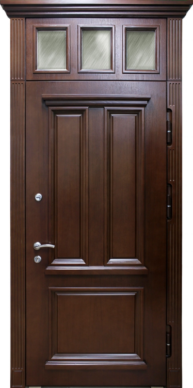 Дверь с сувальдным замком и фрамугой №34 идеально сочетает в себе стиль и надежность. Панель из натурального дерева, использованная как для внешней, так и для внутренней отделки, придает двери благородный и элегантный вид, делая её отличным выбором для помещений с классическим или современным интерьером. Каркас двери выполнен из профильной трубы 50х25 мм и усилен ребрами жесткости, что гарантирует прочность конструкции. Замки от производителей "Просам" и "Мосрентген" с тремя ригелями обеспечивают высокий уровень безопасности. Дверь оснащена уплотнителями с двумя контурами, что гарантирует отличную герметичность, а возможность замены замков и добавления кованых элементов делает её адаптируемой под любые требования. Кроме того, дверь можно дополнить зеркалом, стеклопакетом или видеодомофоном для еще большего комфорта. Входная дверь с сувальдным замком и фрамугой №34 от производителя: быстрое изготовление и монтаж в Одинцово, индивидуальные размеры, широкий выбор материалов и фурнитуры, официальная гарантия до 10 лет.