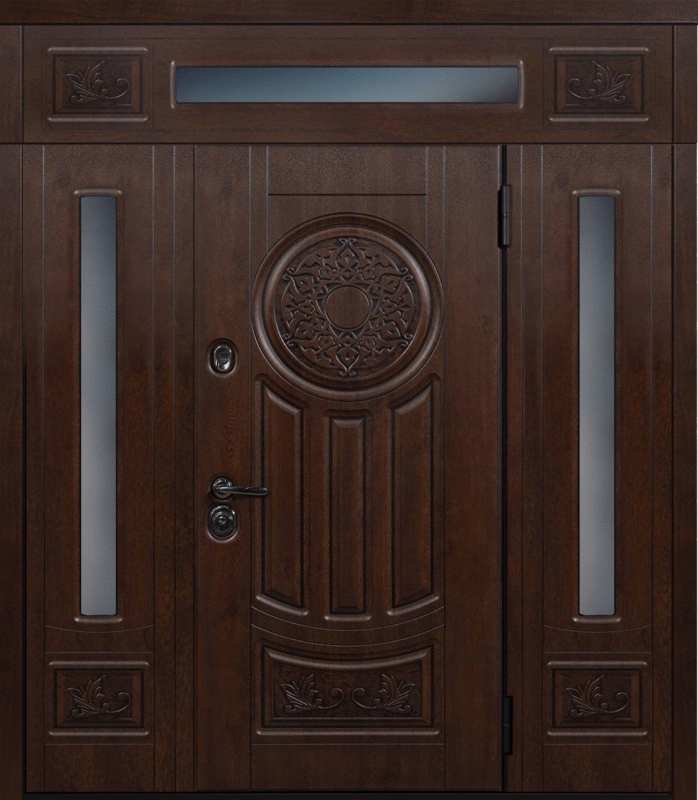 Эта нестандартная парадная дверь с фрамугой №6 — отличный выбор для тех, кто ценит элегантность и долговечность. Внешняя и внутренняя отделка из МДФ придает дверям стильный и современный вид, а также защиту от механических повреждений. МДФ устойчива к царапинам и вмятинам, что делает дверь идеальной для долгосрочной эксплуатации. Каркас из профильной трубы 50х25 мм и лист металла толщиной 2 мм обеспечивают прочность и надежность, а ребра жесткости из профильных труб гарантируют дополнительную устойчивость. В двери установлены блокираторы, два контура уплотнителей из резины, что повышает звуко- и теплоизоляцию. Замки от известных производителей, таких как Просам и Мосрентген, обеспечат надежную защиту. Возможность комбинировать отделку, добавлять зеркало, стеклопакет или кованые элементы позволяет легко адаптировать дверь под любые предпочтения. Нестандартная парадная дверь с фрамугой №6 от производителя: быстрое изготовление и монтаж в Одинцово, индивидуальные размеры, широкий выбор материалов и фурнитуры, официальная гарантия до 10 лет.