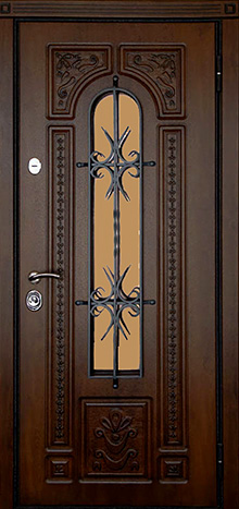 Входная дверь с ковкой и стеклом в частный дом №14 создана для тех, кто ценит практичность и эстетику в равной степени. Каркас из профильной трубы и стальной лист толщиной 2 мм отвечают за надежность и устойчивость, а декоративное остекление с коваными элементами делает вход в дом более светлым и выразительным. Отделка панелями МДФ с ПВХ-покрытием защищает поверхность от влаги, перепадов температуры и мелких повреждений, позволяя двери сохранять презентабельный вид долгие годы. Два контура уплотнения обеспечивают защиту от сквозняков, а при необходимости можно дополнить конструкцию дополнительной шумо- и теплоизоляцией. Входная дверь с ковкой и стеклом в частный дом №14 может изготавливаться в любых размерах и с любым направлением открывания, а также комплектоваться современными замками или дополнительными декоративными элементами, подчеркивающими индивидуальность фасада. Входная дверь с ковкой и стеклом в частный дом №14 от производителя: быстрое изготовление и монтаж в Одинцово, индивидуальные размеры, широкий выбор материалов и фурнитуры, официальная гарантия до 10 лет.