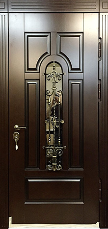 Входная дверь со стеклом и ковкой для загородного дома №16 создана для тех, кто ценит гармонию практичности и декоративного стиля. Каркас из профильной трубы и стальной лист толщиной 2 мм обеспечивают надежную защиту, а декоративная ковка со стеклянными вставками делает вход не только прочным, но и выразительным. Панели МДФ с ПВХ-покрытием используются с обеих сторон: они устойчивы к влаге и перепадам температуры, не теряют формы и сохраняют аккуратный вид на протяжении многих лет. Два контура уплотнения повышают комфорт, защищая дом от сквозняков, а при желании можно добавить дополнительную шумо- и теплоизоляцию. Входная дверь со стеклом и ковкой для загородного дома №16 легко адаптируется под размеры проема и может быть дополнена современными замками или другими декоративными элементами, чтобы подчеркнуть уникальность фасада. Входная дверь со стеклом и ковкой для загородного дома №16 от производителя: быстрое изготовление и монтаж в Одинцово, индивидуальные размеры, широкий выбор материалов и фурнитуры, официальная гарантия до 10 лет.