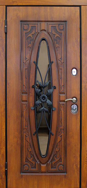 В частном доме дверь должна быть не просто барьером, а настоящей визитной карточкой, и именно эту задачу решает входная дверь со стеклом и ковкой №23. Натуральное дерево в отделке придает ей благородный и теплый вид, а декоративная ковка превращает конструкцию в выразительный элемент архитектуры. Внутри скрыт стальной каркас с листом металла 1,5 мм и противосъёмными блокираторами, что обеспечивает прочность и устойчивость к взлому. Особого внимания заслуживает наличие терморазрыва как в коробке, так и в полотне: он защищает от промерзания, исключает появление конденсата и помогает сохранять тепло зимой и прохладу летом. Тройной контур магнитного уплотнения усиливает герметичность и снижает уровень уличного шума, а пенопласт повышенной плотности в качестве наполнителя добавляет теплоизоляции. Входная дверь в частный дом со стеклом и ковкой №23 гармонично сочетает надежность и эстетику, позволяя владельцу адаптировать её под стиль фасада с помощью дополнительных декоративных решений. Входная дверь в частный дом со стеклом и ковкой №23 от производителя: быстрое изготовление и монтаж в Одинцово, индивидуальные размеры, широкий выбор материалов и фурнитуры, официальная гарантия до 10 лет.