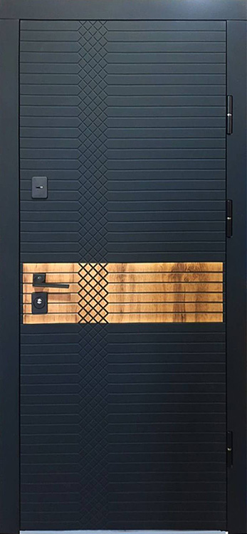Вторая входная дверь в квартиру внутренняя №554 сочетает строгую металлическую основу и аккуратную декоративную отделку. Каркас и полотно изготовлены из профильной трубы с листом металла толщиной 2 мм, усилены ребрами жесткости, что обеспечивает надежную защиту и устойчивость к деформациям. Снаружи и изнутри использованы панели МДФ с ПВХ-покрытием, благодаря которым дверь выглядит современно и стильно, а поверхность устойчива к царапинам, влажности и бытовым нагрузкам. ПВХ-ламинация надолго сохраняет насыщенность цвета и текстуру, не требуя особого ухода. Два контура резинового уплотнения делают полотно более герметичным, уменьшая проникновение сквозняков и постороннего шума. Такая дверь хорошо подойдет для квартиры, офиса или частного дома, где важны и эстетика, и практичность в одном решении. Вторая входная дверь в квартиру внутренняя дверь №554 от производителя: быстрое изготовление и монтаж в Одинцово, индивидуальные размеры, широкий выбор материалов и фурнитуры, официальная гарантия до 10 лет.