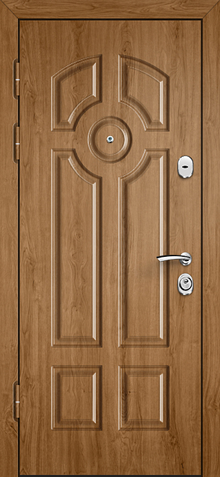 Филёнчатая отделка всегда придаёт дверному полотну особый шарм, создавая эффект глубины и аккуратного рельефа. Входная дверь МДФ с внешней панелью под филёнку №537 универсальна и одинаково хорошо смотрится на фасаде частного дома, в офисе или в квартире. Отделка из МДФ-плиты устойчива к мелким повреждениям, не выгорает и сохраняет аккуратный вид при ежедневной эксплуатации, а при необходимости легко комбинируется с другими декоративными элементами. В основе конструкции — каркас из профильной трубы, лист стали толщиной 2 мм и рёбра жёсткости, обеспечивающие надёжность и жёсткость всей системы. Для удобства и безопасности предусмотрены два замка: сувальдный Просам и цилиндровый Мосрентген. Два контура уплотнения повышают комфорт эксплуатации, а при желании дверь можно дополнить зеркалом, стеклопакетом или коваными вставками, сделав её не только прочной, но и выразительной частью интерьера. Входная дверь МДФ и внешней панелью под филенку №537 от производителя: быстрое изготовление и монтаж в Одинцово, индивидуальные размеры, широкий выбор материалов и фурнитуры, официальная гарантия до 10 лет.