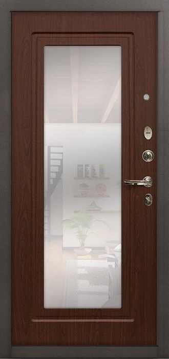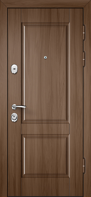 Входная дверь с зеркальными вставками №56 сочетает надежность металлической конструкции и удобство функционального декора. Зеркало не только украшает интерьер, но и делает помещение визуально просторнее, что особенно ценно для квартир и офисов. Для частного дома такая дверь добавляет практичности — всегда можно взглянуть на отражение, выходя на улицу. Отделка выполнена из панелей МДФ с ПВХ-покрытием, устойчивым к царапинам и мелким повреждениям, что обеспечивает долговечность и сохранение первоначального вида. Каркас собран из профильной трубы, усилен рёбрами жёсткости и металлическим листом толщиной 2 мм, благодаря чему дверь выдерживает серьёзные нагрузки и обеспечивает защиту от взлома. Два контура уплотнения препятствуют проникновению сквозняков и пыли, а резиновый уплотнитель сохраняет плотное прилегание полотна. Замковая система включает надежные российские механизмы Просам и Мосрентген, которые отличаются стабильной работой и высоким ресурсом. Дверь №56 — это прочность, удобство и современный дизайн в одной конструкции. Входная дверь с зеркальными вставками №56 от производителя: быстрое изготовление и монтаж в Одинцово, индивидуальные размеры, широкий выбор материалов и фурнитуры, официальная гарантия до 10 лет.