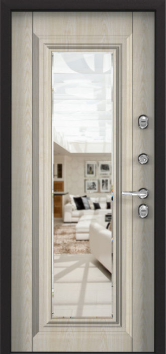 Эта модель сочетает в себе надежность металлоконструкции и практичность современных материалов. Каркас выполнен из профильной трубы с металлическим листом толщиной 2 мм, усиленным ребрами жёсткости и блокираторами, что гарантирует прочность и стойкость к нагрузкам. Железная дверь входная в квартиру с шумоизоляцией №8 отделана панелями МДФ с покрытием ПВХ как снаружи, так и внутри: такая отделка не боится перепадов температуры, устойчива к царапинам и сохраняет аккуратный вид долгие годы. Зеркало на полотне делает интерьер прихожей визуально просторнее и добавляет удобства. Два контура резинового уплотнителя помогают снизить уровень шума и защитить помещение от сквозняков, а при желании можно дополнительно усилить дверь шумо- и теплоизоляцией. В комплектацию входят два замка — сувальдный Просам и цилиндровый Мосрентген, каждый с тремя ригелями, что повышает общую безопасность. Возможность индивидуальной комплектации и изготовления под размеры делает эту модель универсальным решением для квартиры, офиса или дома. Железная дверь входная в квартиру с шумоизоляцией №8 от производителя: быстрое изготовление и монтаж в Одинцово, индивидуальные размеры, широкий выбор материалов и фурнитуры, официальная гарантия до 10 лет.