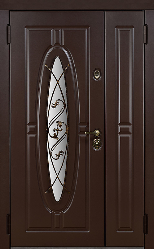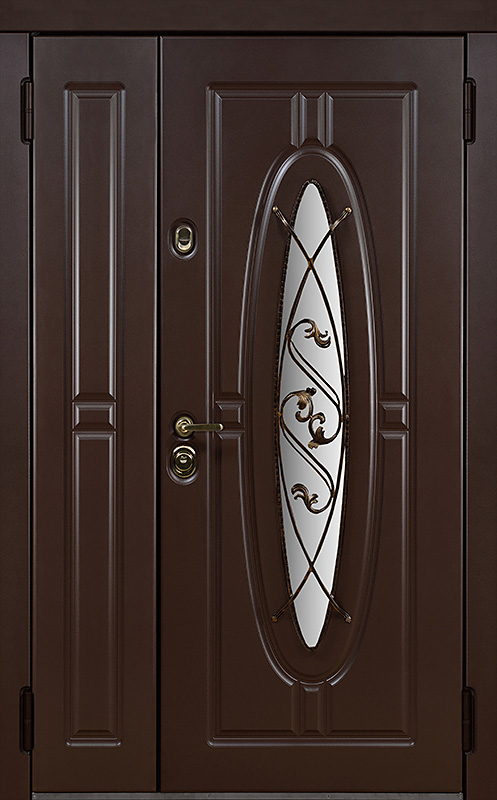Двойная уличная дверь с овальным стеклом и художественной ковкой №14 — это уникальное сочетание функциональности и эстетики. Панели МДФ с ПВХ-покрытием, используемые как для внешней, так и для внутренней отделки, обладают высокой стойкостью к внешним воздействиям, сохраняя свой внешний вид на долгие годы. Внешний декор в виде художественной ковки придаёт двери особый шарм, подчеркивая её стиль и индивидуальность. Двойная уличная дверь с овальным стеклом и художественной ковкой №14 от производителя: быстрое изготовление и монтаж в Одинцово, индивидуальные размеры, широкий выбор материалов и фурнитуры, официальная гарантия до 10 лет.