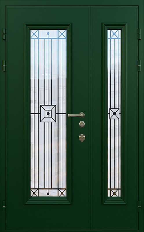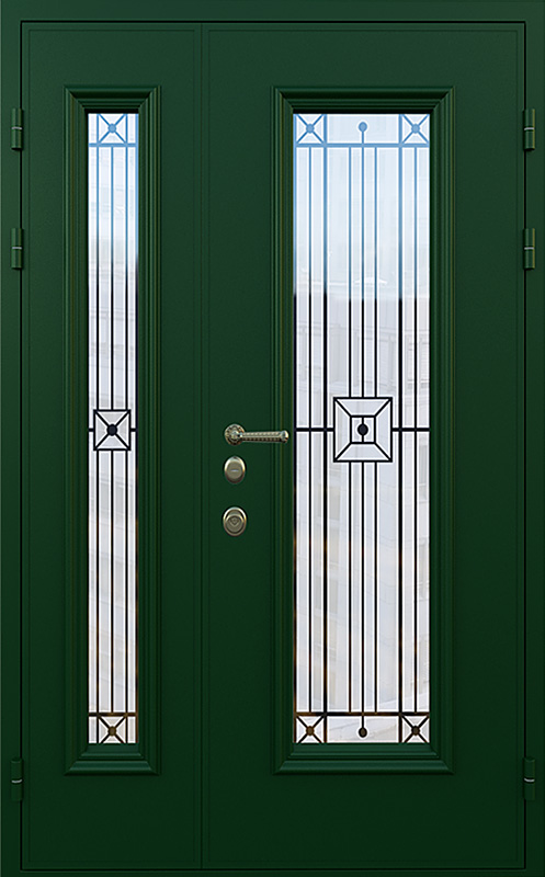 Зеленая полуторная дверь со стеклопакетом для частного дома №18 — это идеальный выбор для тех, кто хочет добавить в свой дом надежность и стиль. Элементы декора, такие как багет и ковка, придают двери элегантный вид, который идеально гармонирует с фасадом загородного дома. Панели МДФ с ПВХ-покрытием, использованные для внешней и внутренней отделки, обеспечивают высокую стойкость к механическим повреждениям и внешним воздействиям, сохраняя прекрасный внешний вид на долгое время. Зеленая полуторная дверь со стеклопакетом для частного дома №18 от производителя: быстрое изготовление и монтаж в Одинцово, индивидуальные размеры, широкий выбор материалов и фурнитуры, официальная гарантия до 10 лет.