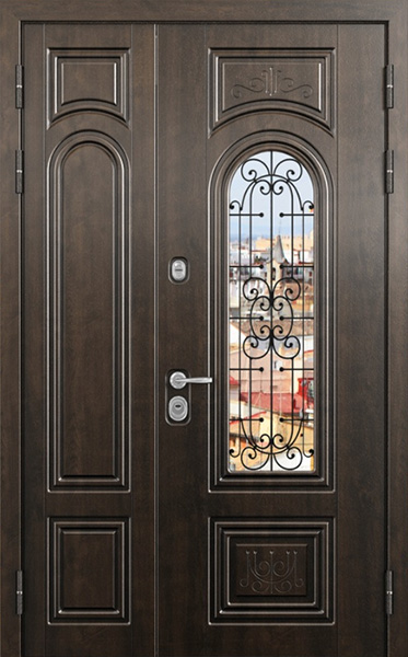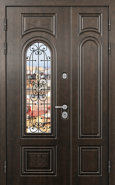 Двупольная стальная дверь со стеклопакетом и кованым узором №24 станет отличным выбором для тех, кто ценит не только безопасность, но и стиль. Внешняя и внутренняя отделка выполнены из МДФ, что придает двери элегантный и современный вид, а также обеспечивает высокую устойчивость к механическим повреждениям и износу. Стеклопакет и кованые элементы добавляют изысканности и уникальности, при этом сохраняя прочность конструкции. Двупольная стальная дверь со стеклопакетом и кованым узором №24 от производителя: быстрое изготовление и монтаж в Одинцово, индивидуальные размеры, широкий выбор материалов и фурнитуры, официальная гарантия до 10 лет.