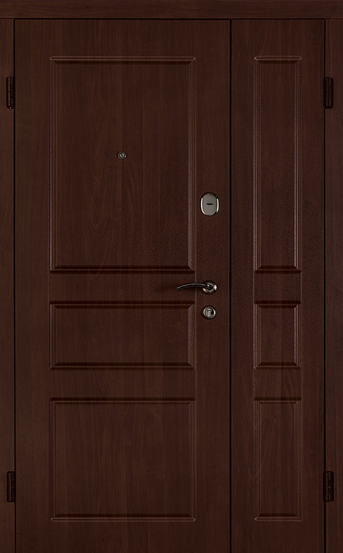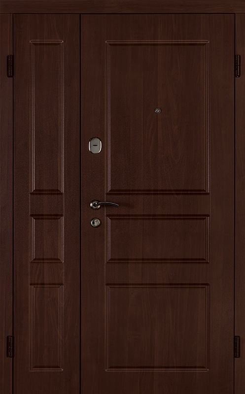 Коричневая входная полуторная дверь с филенчатой створкой №4 – это надежное и стильное решение для вашего дома или офиса. Внешняя и внутренняя отделка из МДФ с ПВХ обеспечивает долговечность и устойчивость к повреждениям, сохраняя при этом элегантный внешний вид. Прочные материалы конструкции, такие как профильная труба 50х25 мм и лист металла толщиной 2 мм, гарантируют стабильность и безопасность. Ребра жесткости из профильных труб 40х25 мм усиливают дверное полотно, а уплотнение с двумя контурами надежно защищает от внешних факторов. Несмотря на отсутствие терморазрыва, в двери реализованы терморазрывы в коробке и полотне, что помогает улучшить теплоизоляцию. Возможность выбора дополнительных опций, таких как шумоизоляция, делает эту дверь универсальной для различных условий эксплуатации. Коричневая входная полуторная дверь с филенчатой створкой №4 от производителя: быстрое изготовление и монтаж в Одинцово, индивидуальные размеры, широкий выбор материалов и фурнитуры, официальная гарантия до 10 лет.
