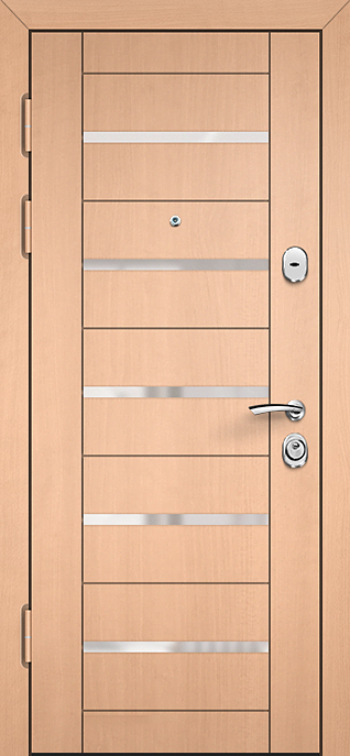 Металлическая дверь в стиле модерн с элементами стеклопакета №8 — это элегантное и функциональное решение для частных домов, квартир и офисов. С внешней отделкой из порошкового термонапыления дверь обладает отличной устойчивостью к внешним воздействиям и долговечностью. Внутренняя отделка выполнена из МДФ с ПВХ покрытием, что придаёт двери современный вид и делает её легко чистящейся. Конструкция из профильной трубы 50х25 мм и листа металла толщиной 2 мм обеспечивает надёжную защиту, а ребра жёсткости гарантируют прочность. Возможность комбинировать отделку и добавить стеклопакет позволяет адаптировать дверь под любые интерьерные решения. Несмотря на отсутствие терморазрыва, дверь обладает высокими теплоизоляционными качествами, а резиновый уплотнитель с двумя контурами препятствует проникновению холодного воздуха. Металлическая дверь в стиле модерн с элементами стеклопакета №8 от производителя: быстрое изготовление и монтаж в Одинцово, индивидуальные размеры, широкий выбор материалов и фурнитуры, официальная гарантия до 10 лет.