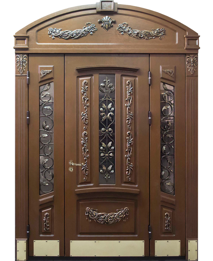 Арка придаёт входу особый характер и сразу выделяет дом среди соседних построек. Арочная входная дверь стеклопакет для загородного дома сочетает в себе статусность массивного дуба и современную практичность стеклопакета, который наполняет прихожую естественным светом и визуально облегчает массивное полотно. Стальной каркас с листом металла толщиной 2 мм и ребрами жёсткости обеспечивает надёжность, а два контура уплотнения защищают от сквозняков. Терморазрыв в коробке и полотне предотвращает промерзание, что особенно актуально для эксплуатации в загородных коттеджах. Натуральный дуб в отделке не только долговечен, но и устойчив к повреждениям, сохраняя презентабельный вид долгие годы. Такая дверь подчёркивает архитектурный стиль дома и позволяет совместить изысканность формы с практичностью современных технологий. Арочная входная дверь стеклопакет для загородного дома от производителя: быстрое изготовление и монтаж в Одинцово, индивидуальные размеры, широкий выбор материалов и фурнитуры, официальная гарантия до 10 лет.