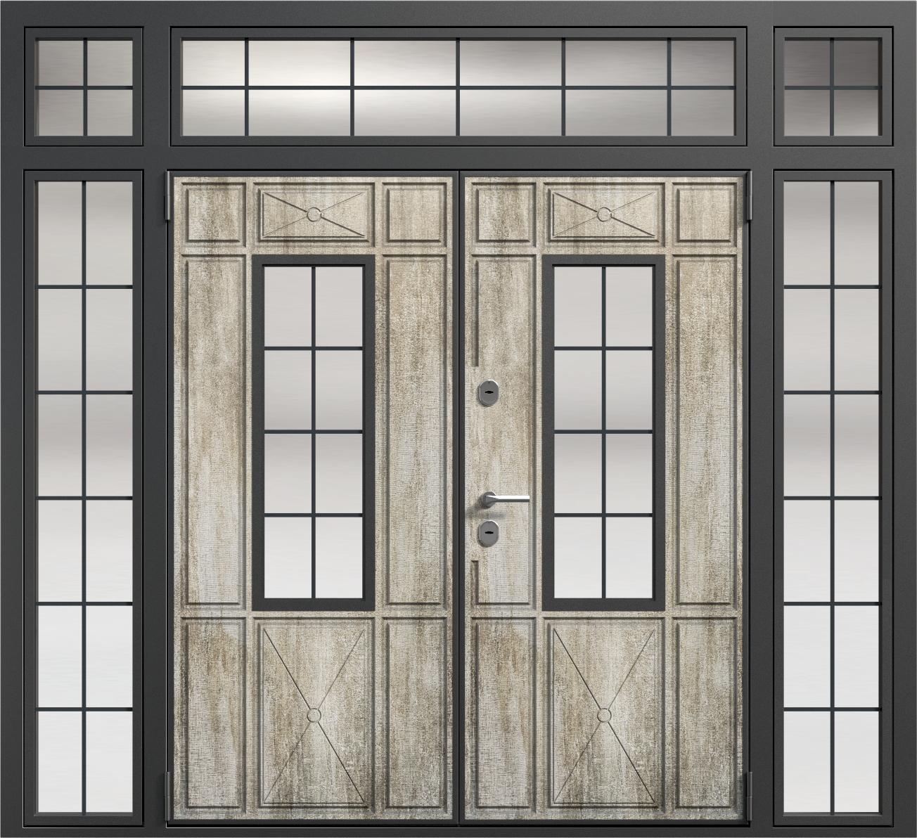 Парадная дверь с остекленной фрамугой №6 — это идеальный выбор для тех, кто ценит элегантность и функциональность. Внешняя отделка из панелей МДФ ПВХ обеспечивает долговечность и устойчивость к внешним воздействиям, что делает эту модель подходящей как для частных домов, так и для офисных помещений. Прочная конструкция с каркасом из профильной трубы 50x25 мм и листом металла толщиной 2 мм гарантирует долговечность и высокую безопасность. Замки Kale Kilit с тремя ригелями обеспечат надежную защиту, а уплотнение с двумя контурами эффективно защитит от шума и холода. Дополнительные элементы, такие как стеклопакеты, зеркала или кованые элементы, можно добавить по вашему желанию, позволяя адаптировать дверь под любые требования. Парадная дверь с остекленной фрамугой №6 от производителя: быстрое изготовление и монтаж в Одинцово, индивидуальные размеры, широкий выбор материалов и фурнитуры, официальная гарантия до 10 лет.