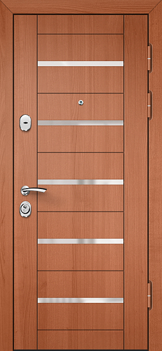 Современная входная дверь с цилиндровым замком №21 сочетает строгую надежность металлической конструкции и аккуратный внешний вид. Каркас из профильной трубы и лист стали толщиной 2 мм образуют прочный щит, усиленный ребрами жесткости и блокираторами. Накладки из МДФ придают полотну более «домашний» облик: материал не только эстетичен, но и практичен — ПВХ-покрытие стойко переносит небольшие повреждения и сохраняет первозданный вид долгие годы. Такая дверь подходит для квартиры, офиса или частного дома, где важно совместить защиту и стиль. Цилиндровый замок обеспечивает удобное и надежное закрывание, а два контура резинового уплотнителя защищают от сквозняков и лишнего шума. При желании возможно дополнить конструкцию тепло- и шумоизоляцией или установить замки другого типа, включая современные электронные системы. Современная входная дверь с цилиндровым замком №21 от производителя: быстрое изготовление и монтаж в Одинцово, индивидуальные размеры, широкий выбор материалов и фурнитуры, официальная гарантия до 10 лет.