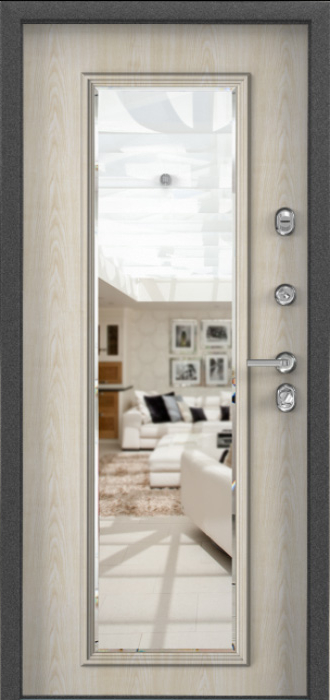 Сочетание прочной конструкции и декоративных решений делает эту модель особенно практичной для частного дома или квартиры. Каркас и полотно выполнены из профильной трубы с листом стали толщиной 2 мм, усиленные рёбрами жёсткости и блокираторами, что обеспечивает высокую надёжность. Два контура резинового уплотнителя препятствуют проникновению влаги и сквозняков, а порошковое напыление на внешней поверхности защищает металл от коррозии и сохраняет аккуратный вид даже при воздействии осадков и солнечного света. Внутренняя отделка панелями МДФ ПВХ создаёт уютный интерьерный акцент и устойчива к повседневным нагрузкам. Дверь входная металлическая уличная в дом №12 дополнена зеркалом, которое делает её не только функциональной, но и более удобной в быту. Для безопасности предусмотрены два замка российского производства — сувальдный Просам и цилиндровый Мосрентген, каждый с тремя ригелями. Дополнительно дверь можно оснастить стеклопакетом или коваными элементами, превратив её в индивидуальное решение для конкретных задач. Дверь входная металлическая уличная в дом №12 от производителя: быстрое изготовление и монтаж в Одинцово, индивидуальные размеры, широкий выбор материалов и фурнитуры, официальная гарантия до 10 лет.